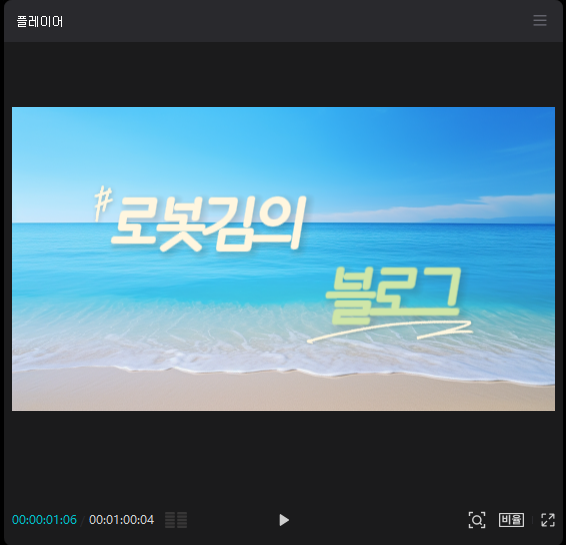 - 이 부분에서 작업하고 있는 영상을 확인할 수 있습니다. 편집했을 때 영상이 어떻게 나오게 되는지 등을 확인하실 수 있고, 재생 등을 해볼 수 있습니다.