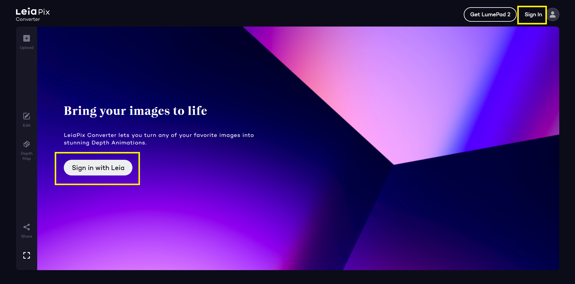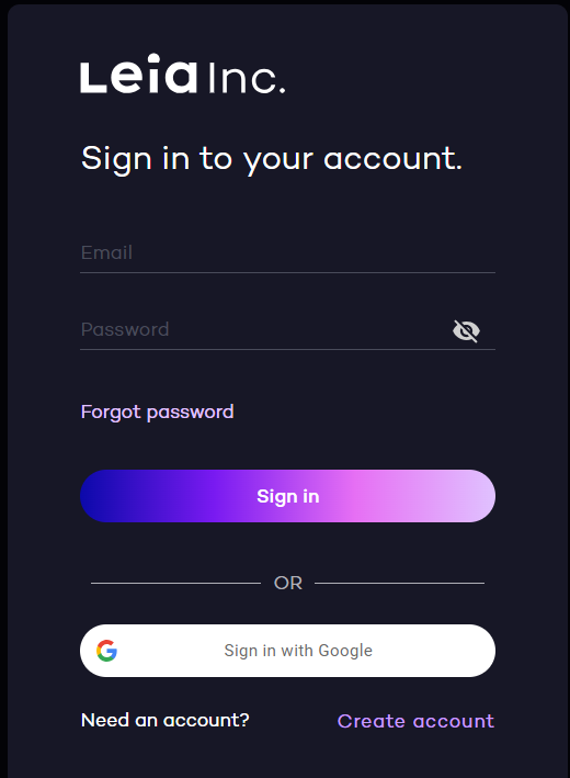 2) 위 사진에서 노란색 네모 박스로 되어 있는 부분인 'Sign in with Leia' 또는 오른쪽 상단에 있는 'Sign in'을 클릭해주시면 되겠습니다.
