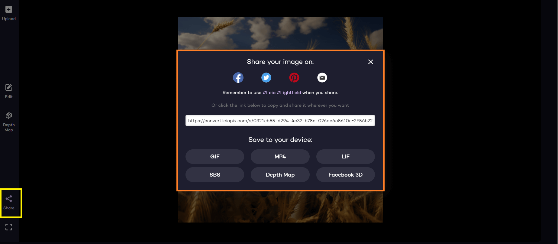 - 이미지를 다 만드셨다면, 위 사진에서 노란색 네모 박스 부분인 'Share'를 클릭하시면 됩니다. 그러면 위 사진에서 주황색 네모 박스 부분이 나타나게 되는데요, 이 중에서 여러분께서 원하시는 방법을 선택하시면 되겠습니다. 원하시는 방법을 선택하시게 되면 'Save'를 누르셔서 저장해주시면 되겠습니다.