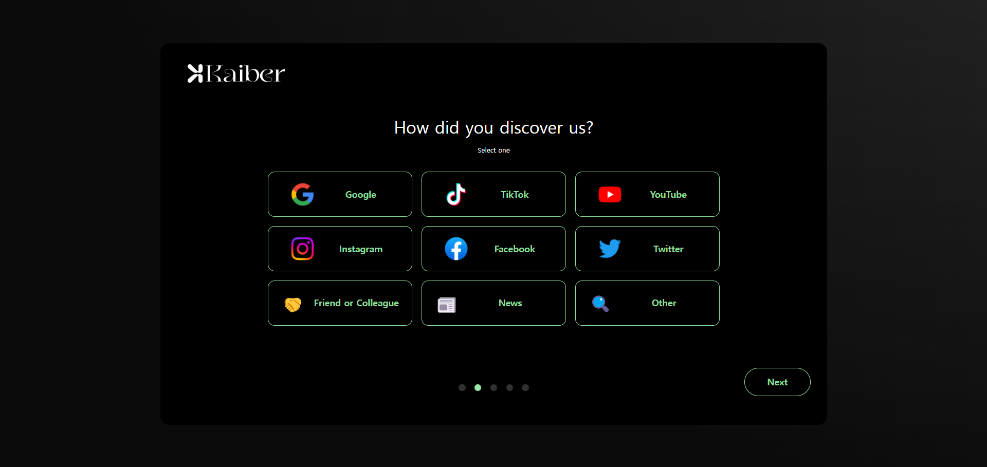 (2) 카이버를 어떻게 알게 되었는지 묻는 입니다. 여러분이 알게 되신 경로를 클릭해주시고 다음으로 넘어가 주시면 됩니다.