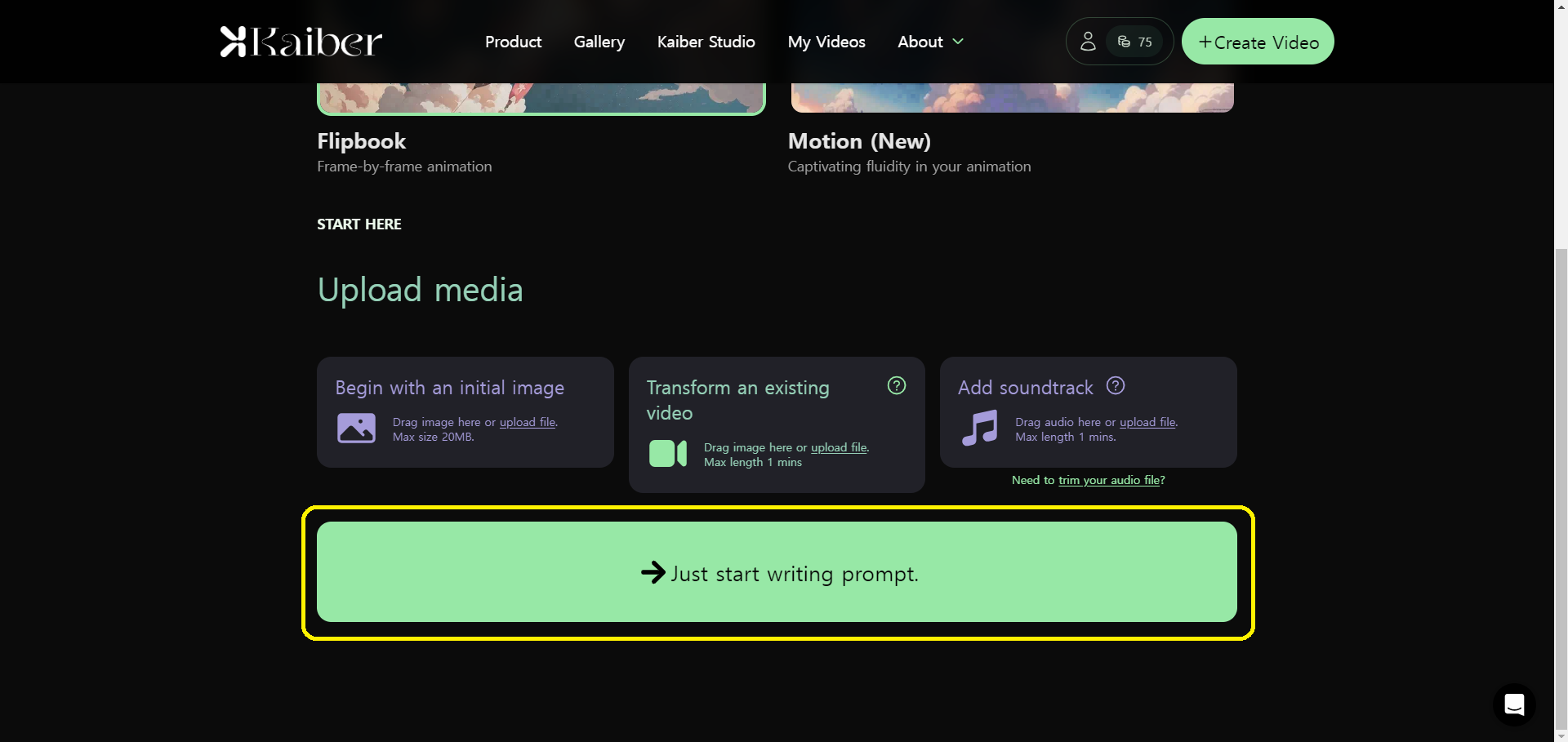 먼저 위 화면에서 'just start writing prompt'를 눌러줍니다.