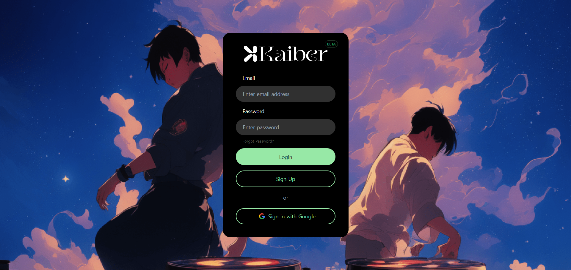 - 먼저 이미 Kaiber 회원이시라면 위 화면에서 이메일과 비밀번호를 입력해 로그인을 해주시면 됩니다.