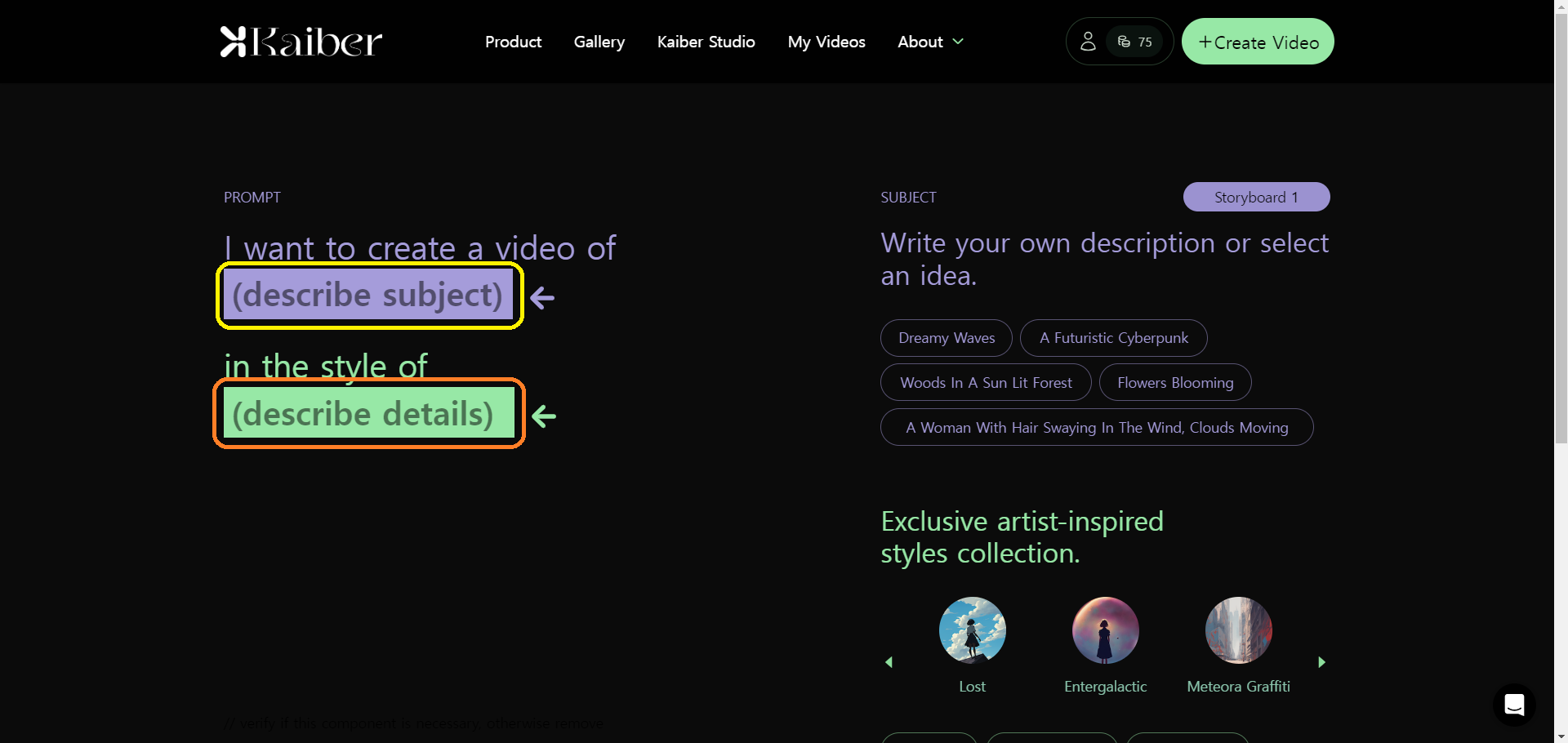 주황색 네모 박스로 되어있는 부분에는 여러분이 원하시는 영상의 '스타일'을 입력해주시면 됩니다.